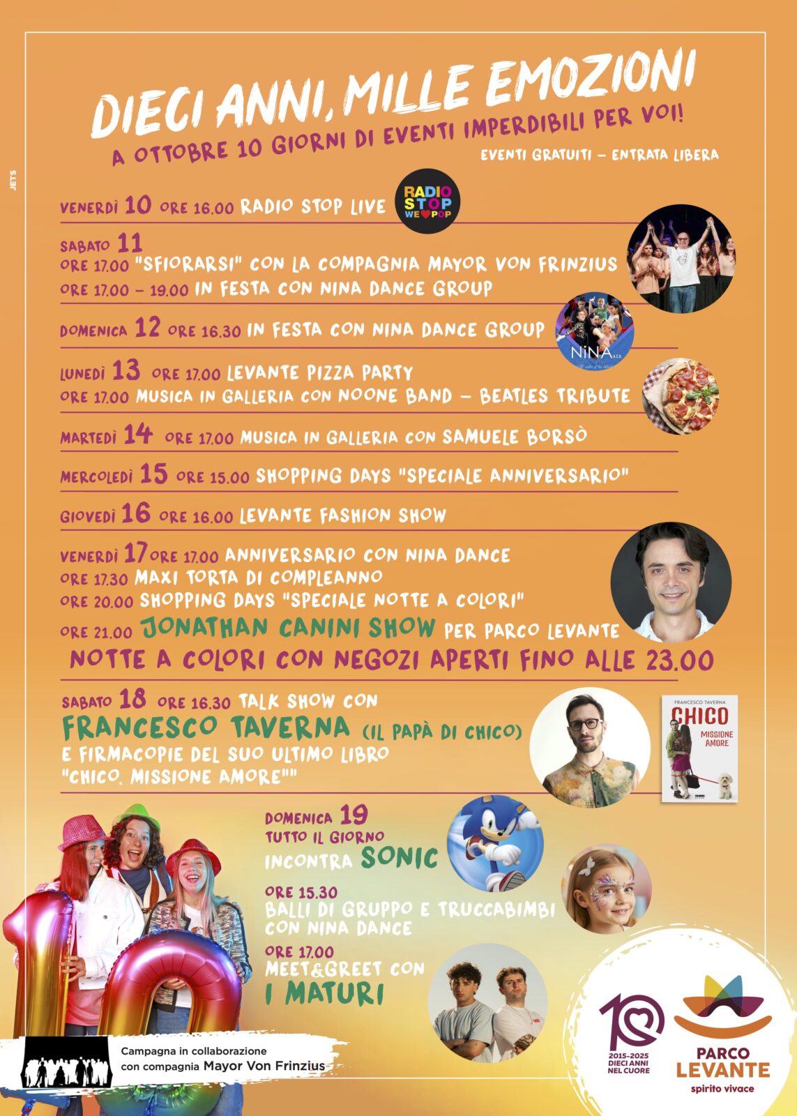 Dal 10 al 19 ottobre, vivremo dieci giorni di eventi, spettacoli e sorprese, per celebrare questo anniversario con lo spirito vivace che da sempre ci contraddistingue.